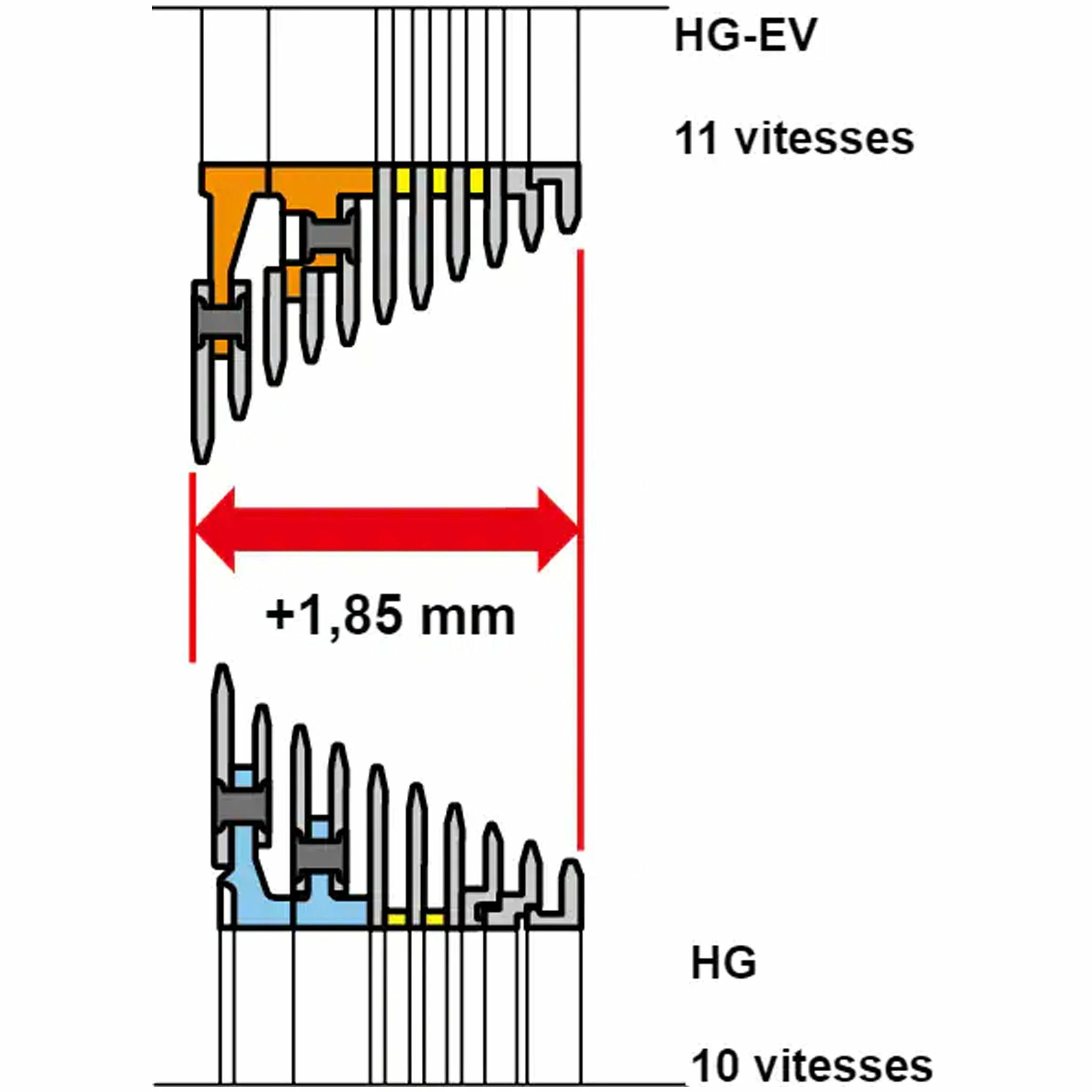 La cassette vélo route Shimano est dotée de la technologie HG-EV qui permet un passage de vitesse amélioré, fluide et rapide. Il s’agit d’une cassette Shimano de qualité, adaptée spécialement pour la route et les terrains mixtes. La technologie HG-EV permet d’obtenir les 11 vitesses sans pour autant peser sur la robustesse des 10 vitesses (voir photo).