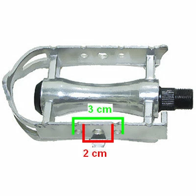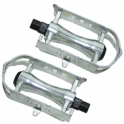 Ces pédales pour vélo en aluminium donnent à votre vélo un look vintage ou rétro. Elles sont de couleur argent. Elles possèdent les emplacements pour mettre les catadioptres qui permettront d’être visible la nuit. Elles possèdent aussi des emplacements pour les cale-pieds de vélo à sangles. Ces cale-pieds sont disponibles en produit complémentaire. Ces pédales sont vendues par paire.