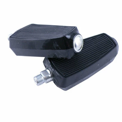 Ces pédales sont conçues à l’origine pour tourner sur des mobylettes, Vélosolex ou Motobécane. Elles conviennent aussi bien au cycliste cherchant un accessoire vintage. Les pédales mesurent 122 x 58 mm avec un pas de vis de 14 x 1.25. Elles sont fabriquées en monobloc de PVC noir avec axe en acier.