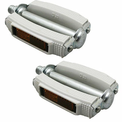 Ces jolies pédales blanches possèdent un corps et un axe en acier galvanisé résistant à la rouille, des roulements à billes internes et une plateforme en PVC blanc aux contours arrondis pour donner un style distinctif et vintage à votre vélo de ville. La plateforme est antidérapante pour assurer la sécurité et le confort par tous les temps. Des catadioptres sont également insérés de chacun des côtés des pédales pour plus de visibilité.