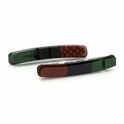 Ces patins de frein sont prévus pour remplacer des patins usés. Ils sont constitués de trois gommes pour répondre au mieux aux besoins de freinage. Une première gomme, verte permet d’avoir de très bonnes performances de freinage même en conditions humides, la deuxième gomme, de couleur noire, est prévue pour offrir de très bonnes performances de freinage lorsque le temps n’est pas humide. La dernière gomme, marron, permet de réduire le bruit fait par les patins en frottant sur la jante du vélo.