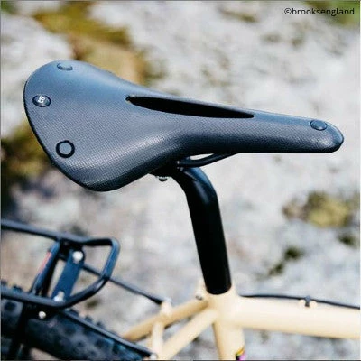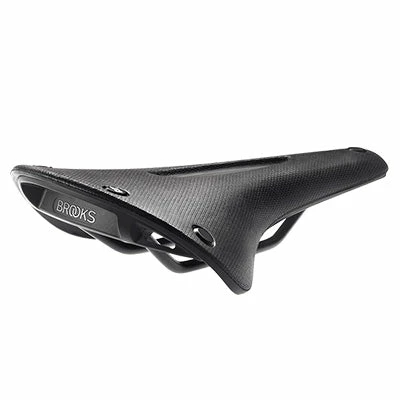 Au design contemporain et élégant, la gamme de selle All Weather est usinée à partir d’un caoutchouc naturel vulcanisé et d’un coton biologique. Première des selles de la marque à ne pas être en cuir, la selle C17 Carved Brooks est « prête à l’emploi » directement. Les nouveaux matériaux utilisés la rendent flexible et souple. Elle n’a ainsi pas besoin de se faire avec le temps comme les selles en cuir. De plus quelle que soit la météo, sous une pluie battante ou un soleil éclatant, elle est performante et ne nécessite aucun entretien. Le revêtement en nylon est waterproof et imperméable. Les rails sont en acier. La plaque arrière renforcée en fibre de verre dispose de boucles pour y accrocher une sacoche de selle ou autre accessoire.