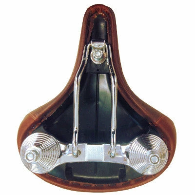 Cette selle de vélo beach cruiser est de couleur marron. Avec un aspect cuir marron elle apporte un style vintage au vélo. Cet accessoire est tout aussi confortable grâce à système de suspensions qui permet d’amortir les à-coups et à sa large assise. Elle possède un double revêtement pour une bonne protection. Ses dimensions sont de 230 mm largeur – 260 mm longueur, pour un poids de 870 grammes .